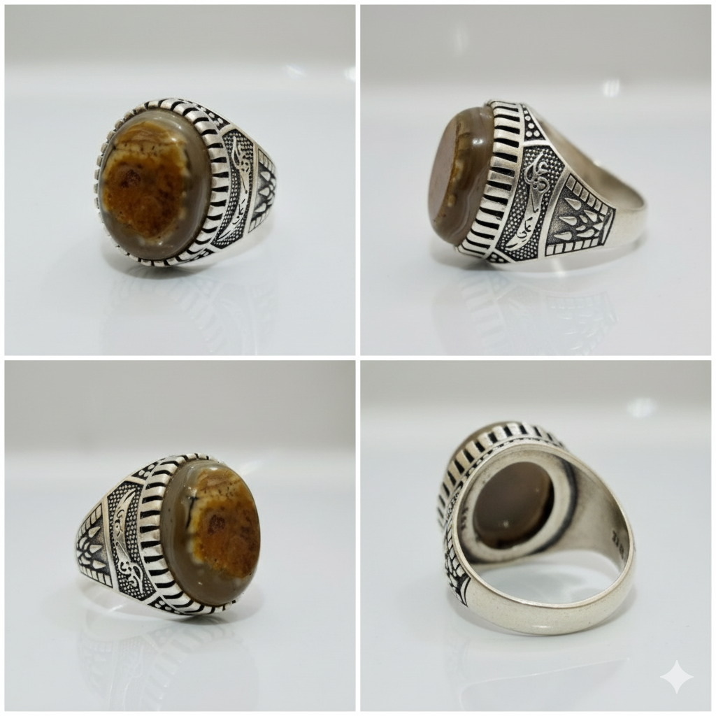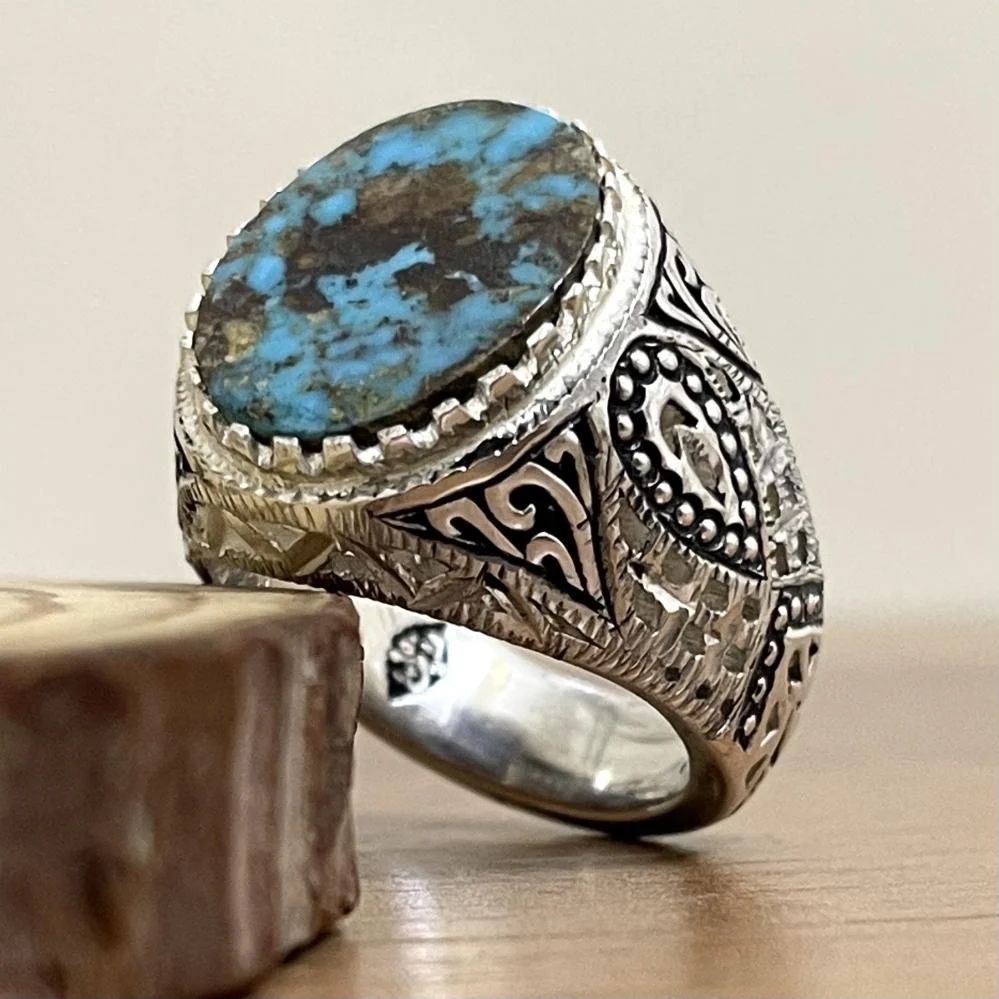 من مقتنياتنا النادرة, حجر نادر فيروز نيشابوري حسيني مروحن وبصياغة مخصصة مع حفر اسم الشخص عليه,